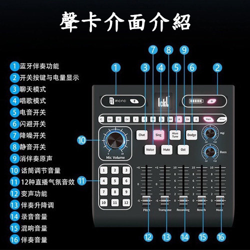 【公司現貨 保固1年 專人一對一教學】lckb MONO 音樂升降KEY 聲卡 最新版本帶內放 K歌 48V萬象 直播