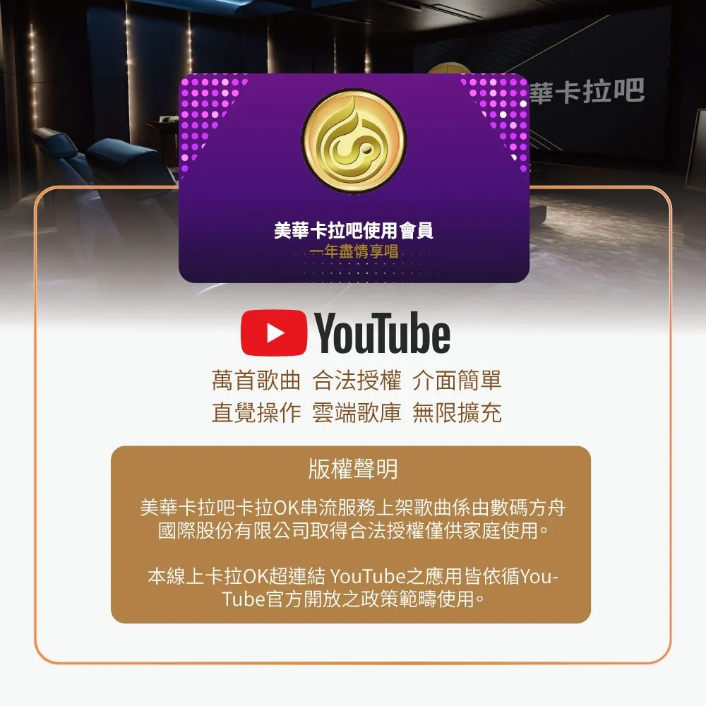 •上萬筆正版授權歌庫(免灌歌、雲端自動更新)