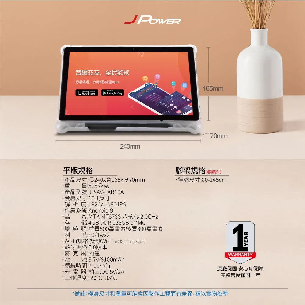 【JPOWER杰強】SingPAD 10.1 吋 美華點歌平板+美華一年序號