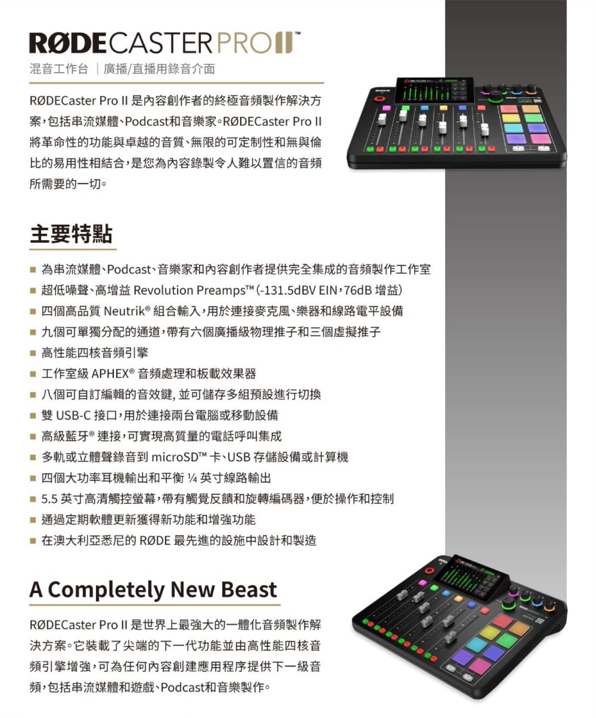 【RODE】Caster Pro II 混音工作台 白色│廣播/直播用錄音介面 公司貨 數量