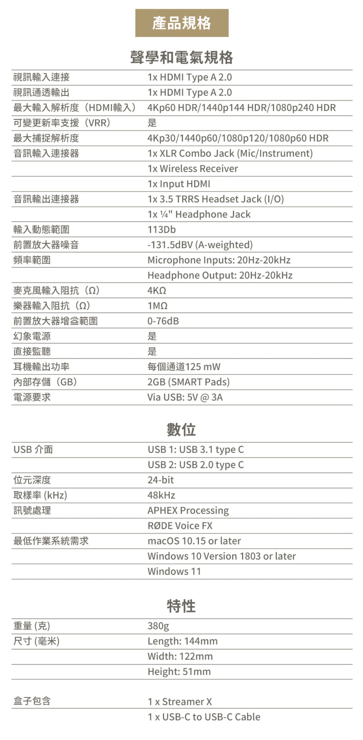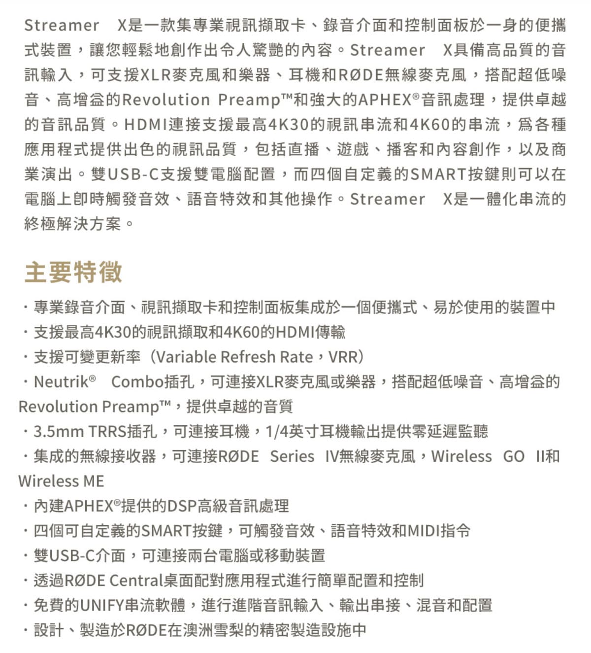 【RODE】Streamer X 錄音介面 / 影像擷取卡 公司貨