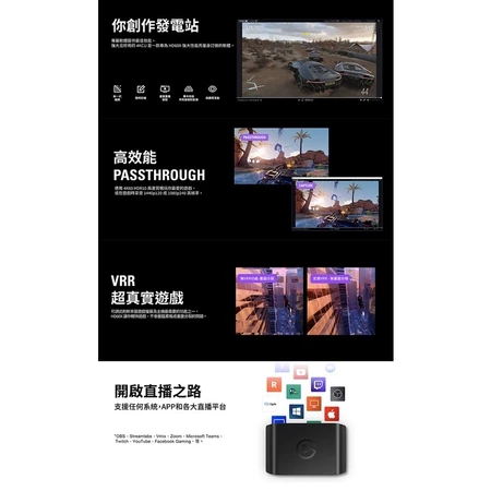 輸出:HDMI(零延遲),高達 2160p60、1440p120、1080p240、VRR可變刷新率、HDR