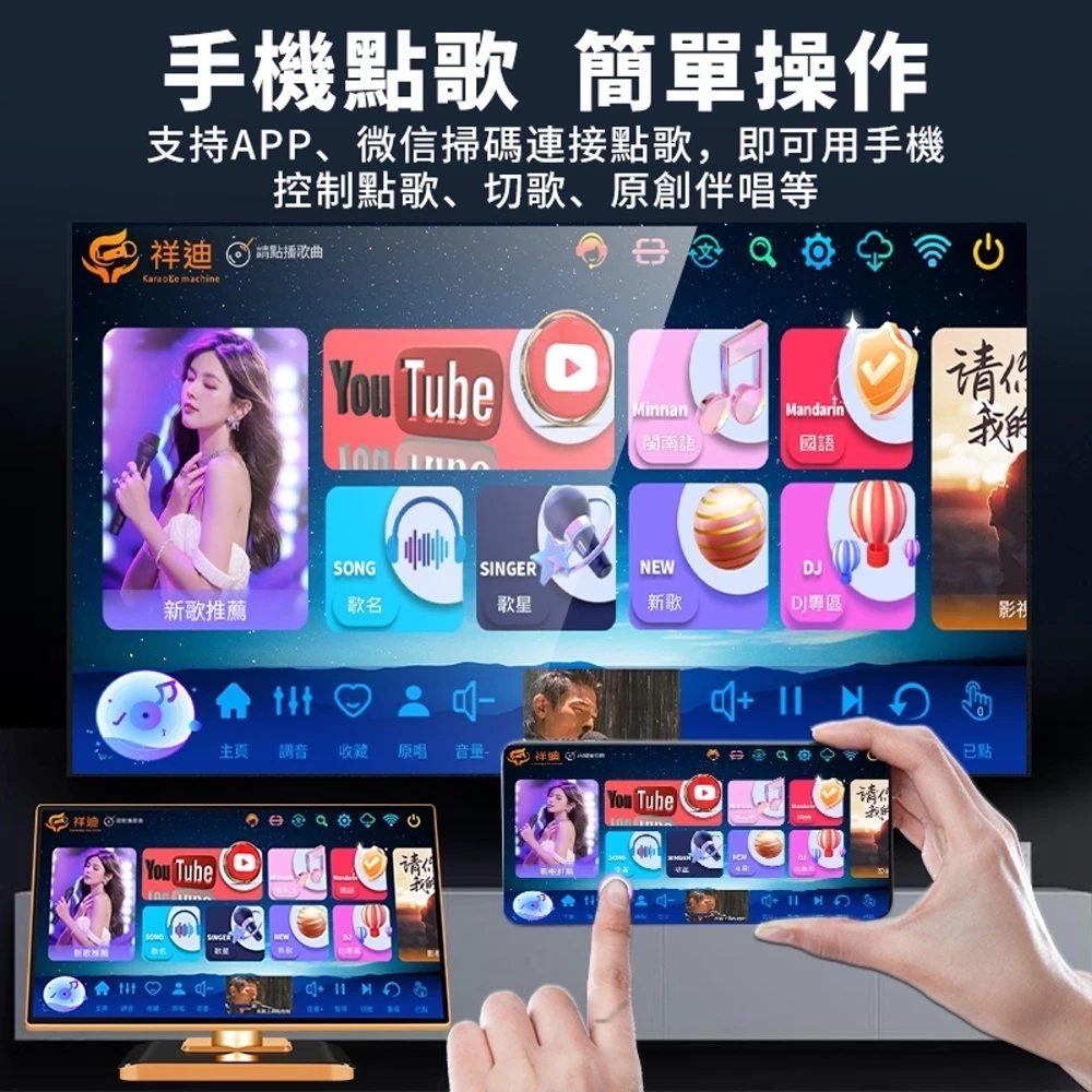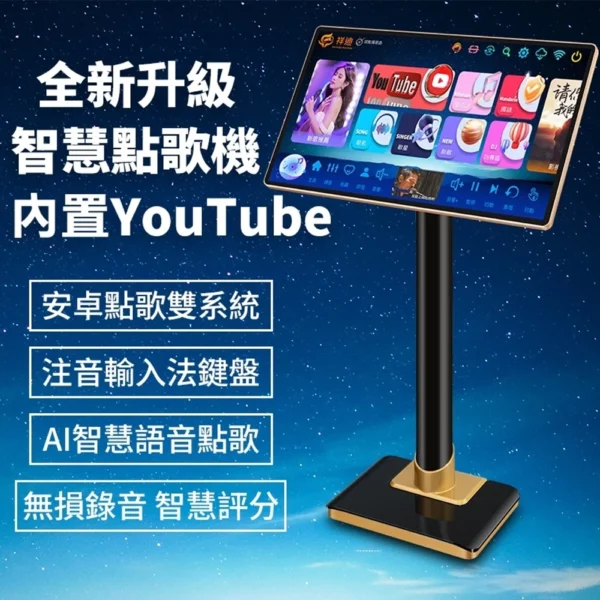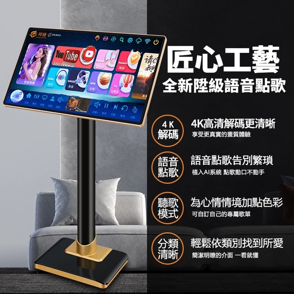 祥迪電容觸控點唱機 台灣區改良版TV家用豪華型19.5吋大畫面可外接電視音響 附玫瑰金攜帶式無線麥克風2支