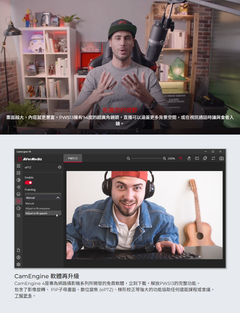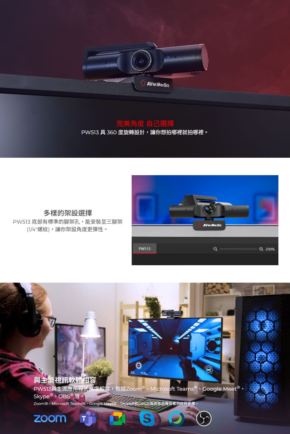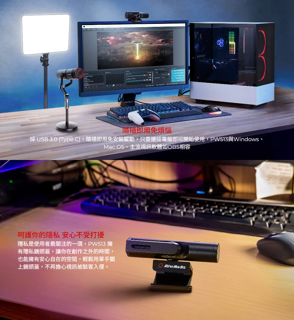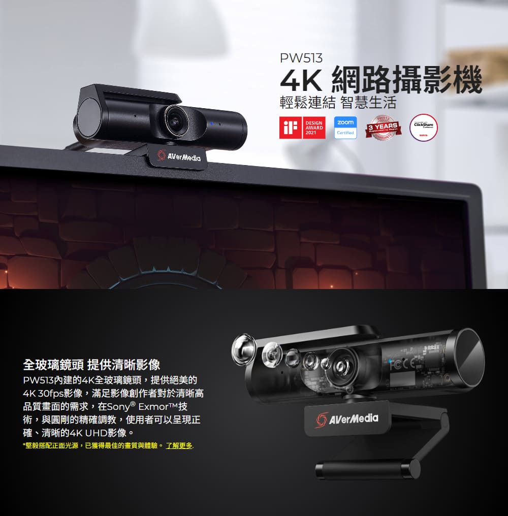 AVerMedia 圓剛極致 4K UHD網路攝影機 PW513 視訊鏡頭 2160P