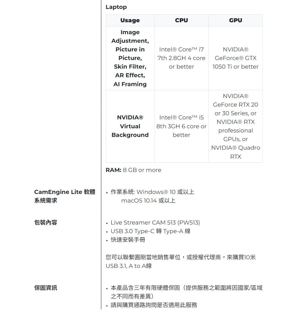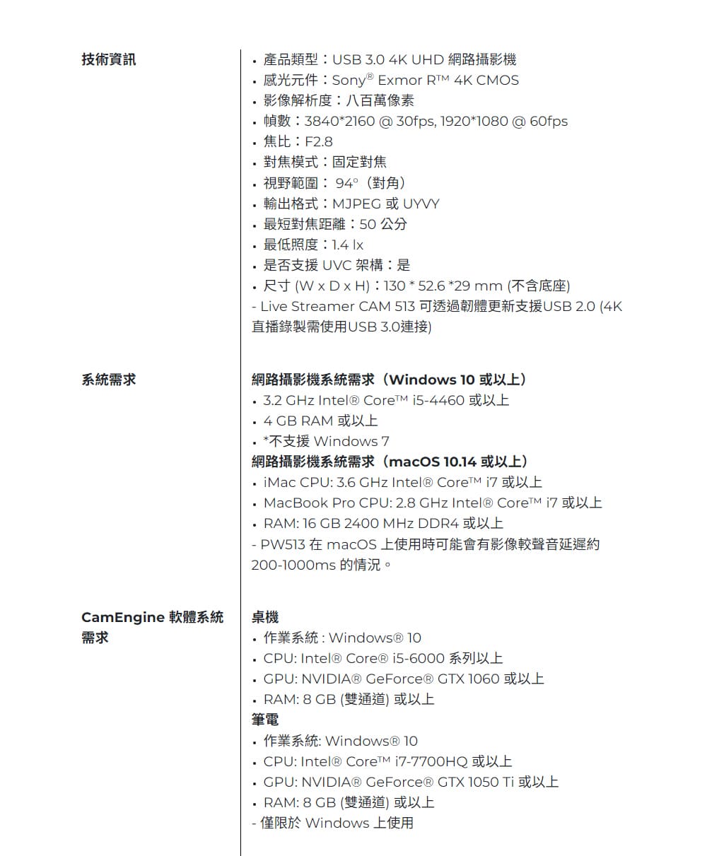 AVerMedia 圓剛極致 4K UHD網路攝影機 PW513 視訊鏡頭 2160P 數量