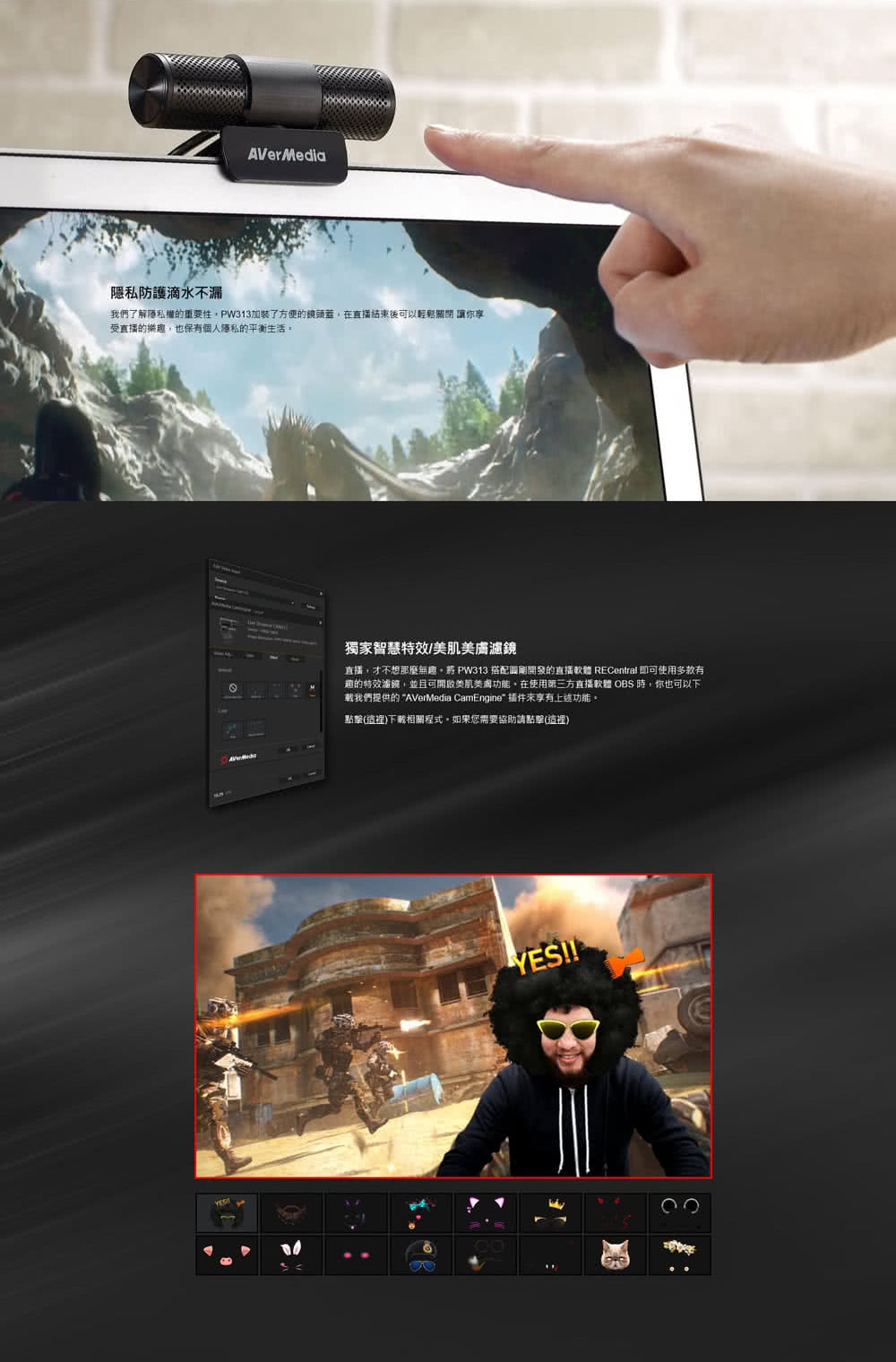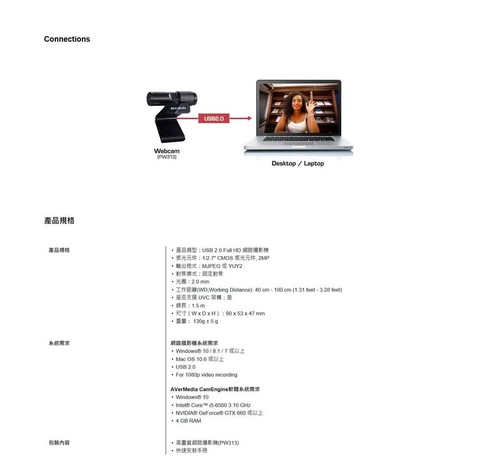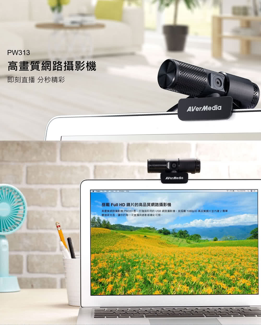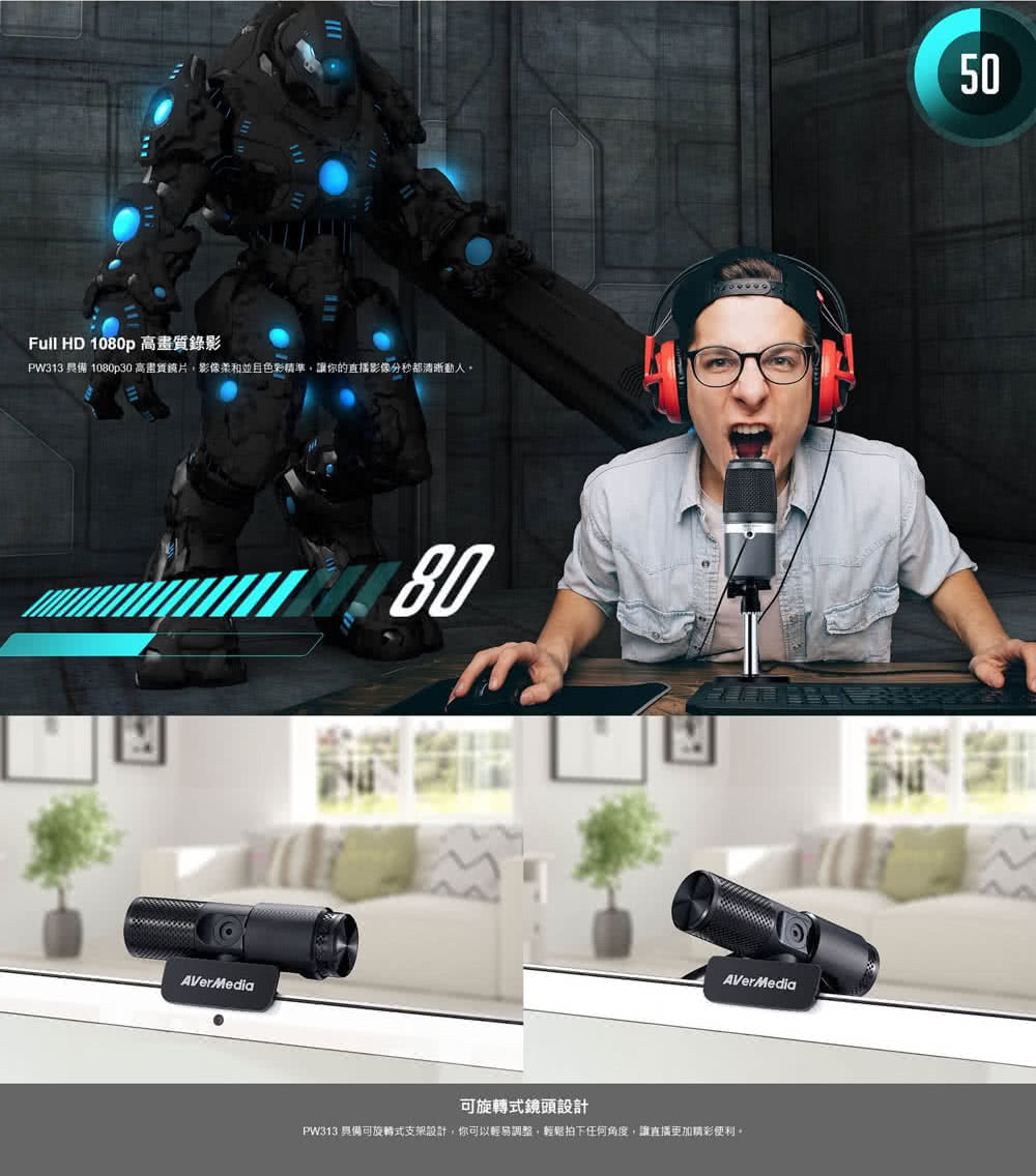 AVerMedia 圓剛 PW313 1080P 直播網路攝影機(首創美膚/動態濾鏡功能)