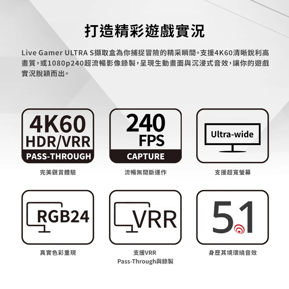 ● GC553Pro Live Gamer ULTRA S 4K實況擷取盒,讓你的榮耀時刻 在每一幀影像中閃耀