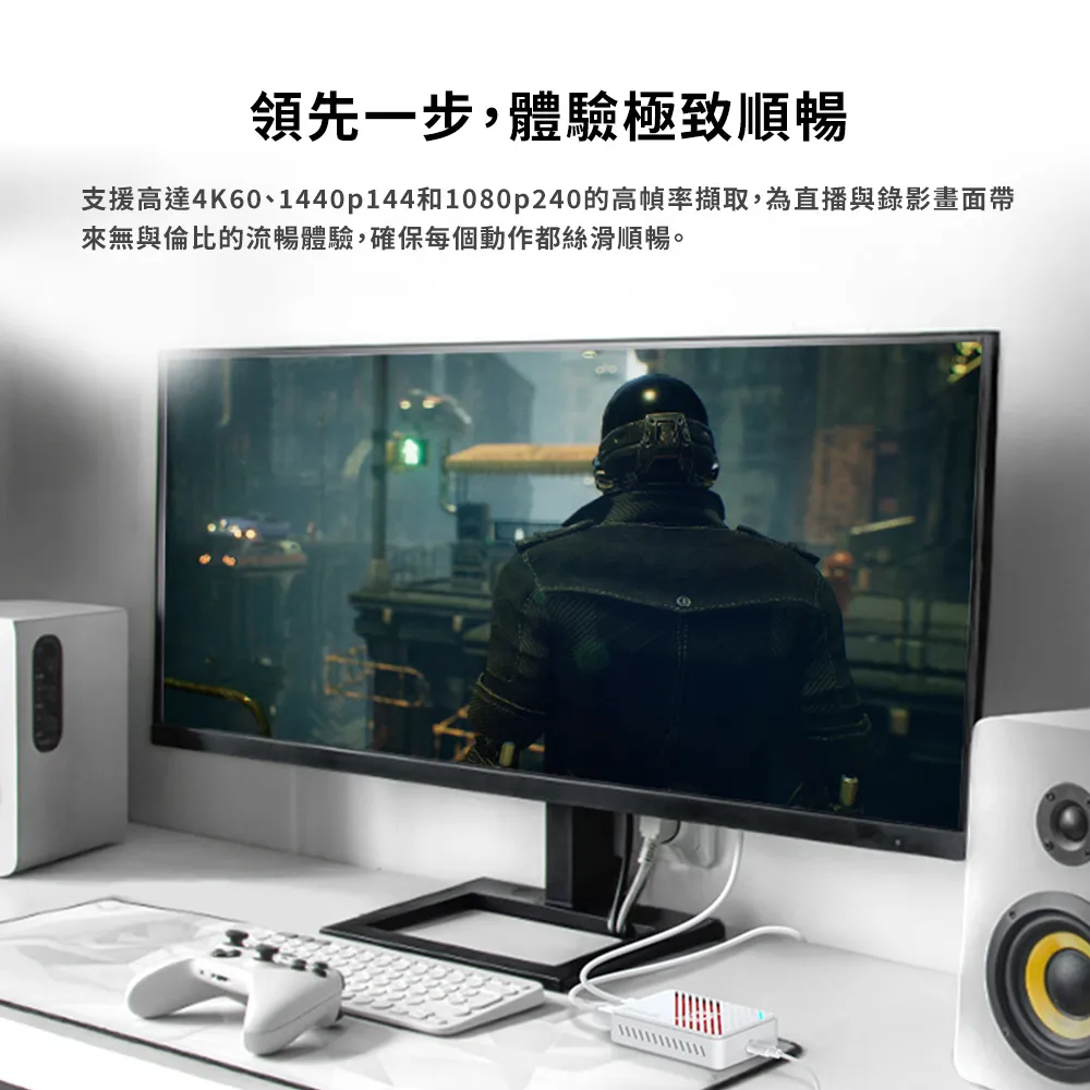 ● 支援高達4K60、1440p144 和 1080p240的高幀率擷取,領先一步體驗無與倫比的極致順暢