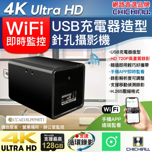 【CHICHIAU】WIFI 4K USB充電器造型無線網路微型針孔攝影機WM1