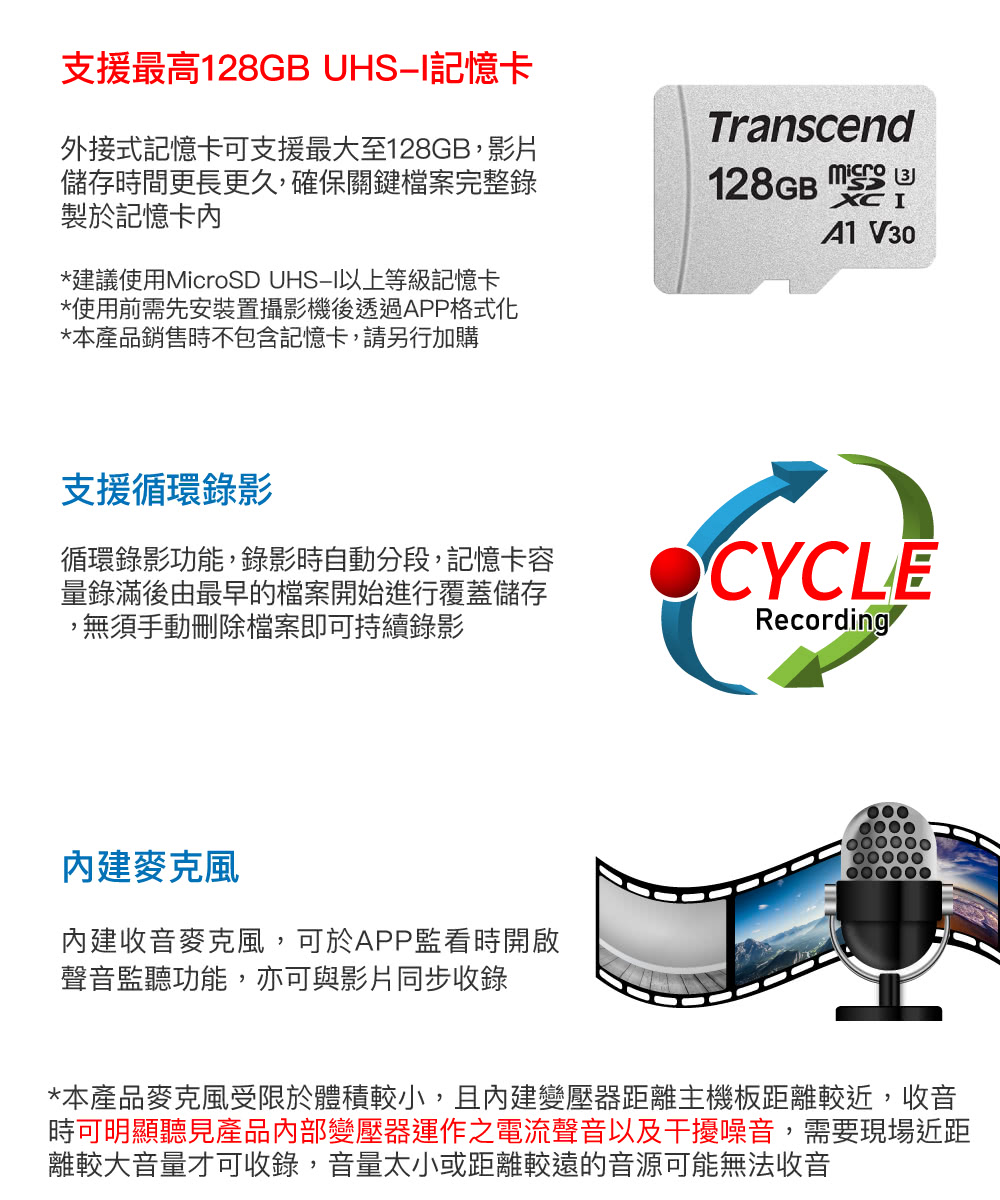 - 支援最大128GB記憶卡