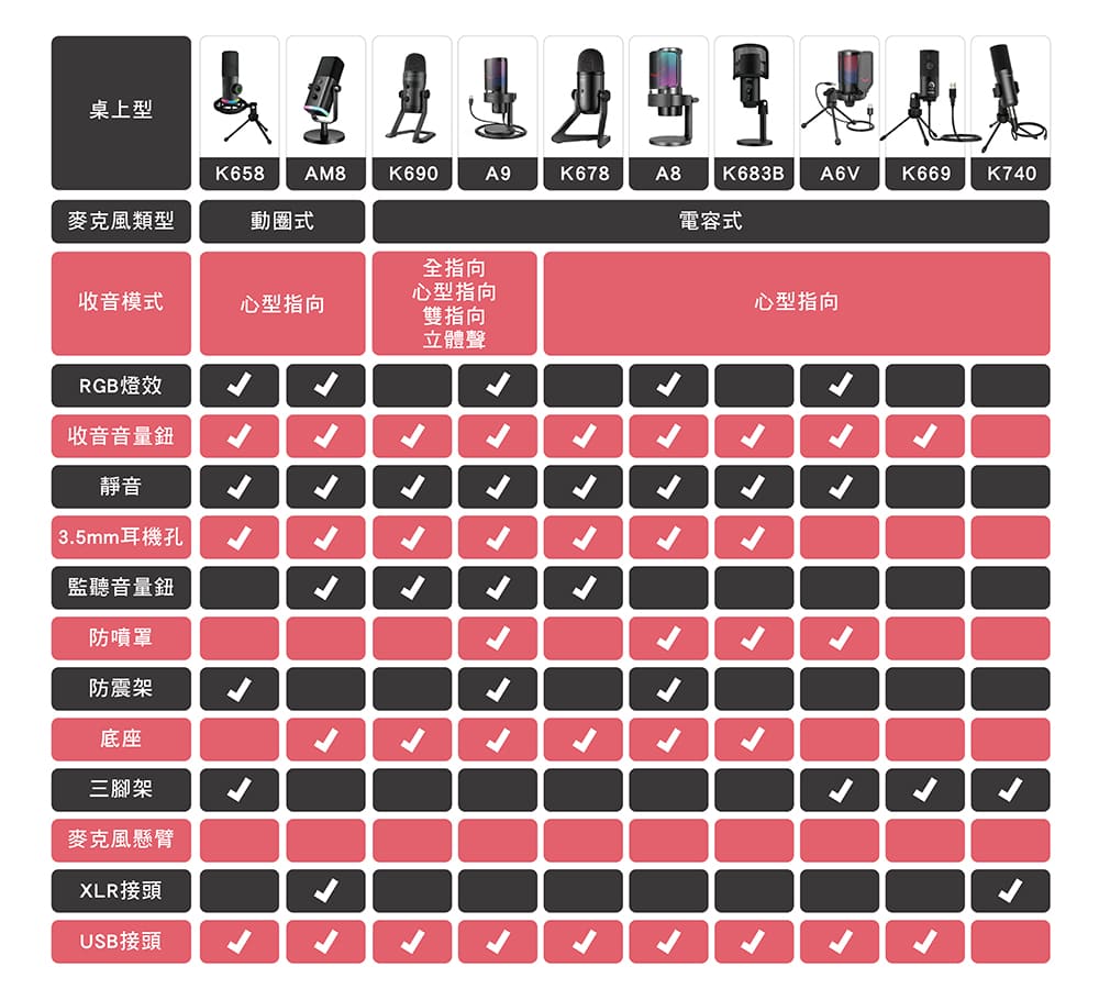 可適用FIFINE K683B、K658、K669、A6V、AM8麥克風。