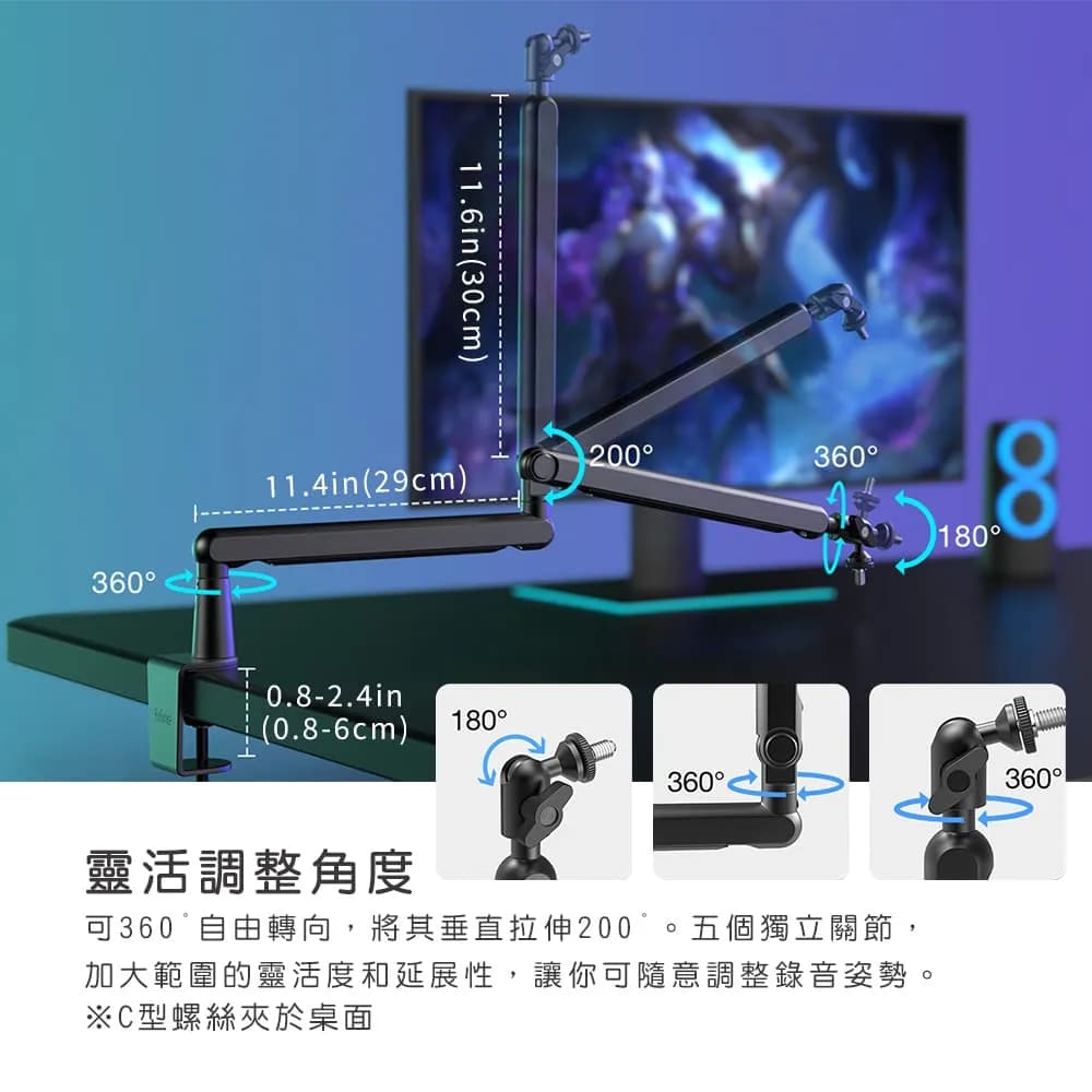 五個獨立關節,加大範圍的靈活度和延展性,讓你可隨意調整錄音姿勢。
