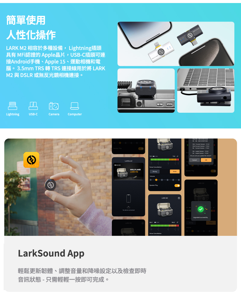 Hollyland LARK M2 combo 全能版 一對二無線麥克風 –潤橙公司貨