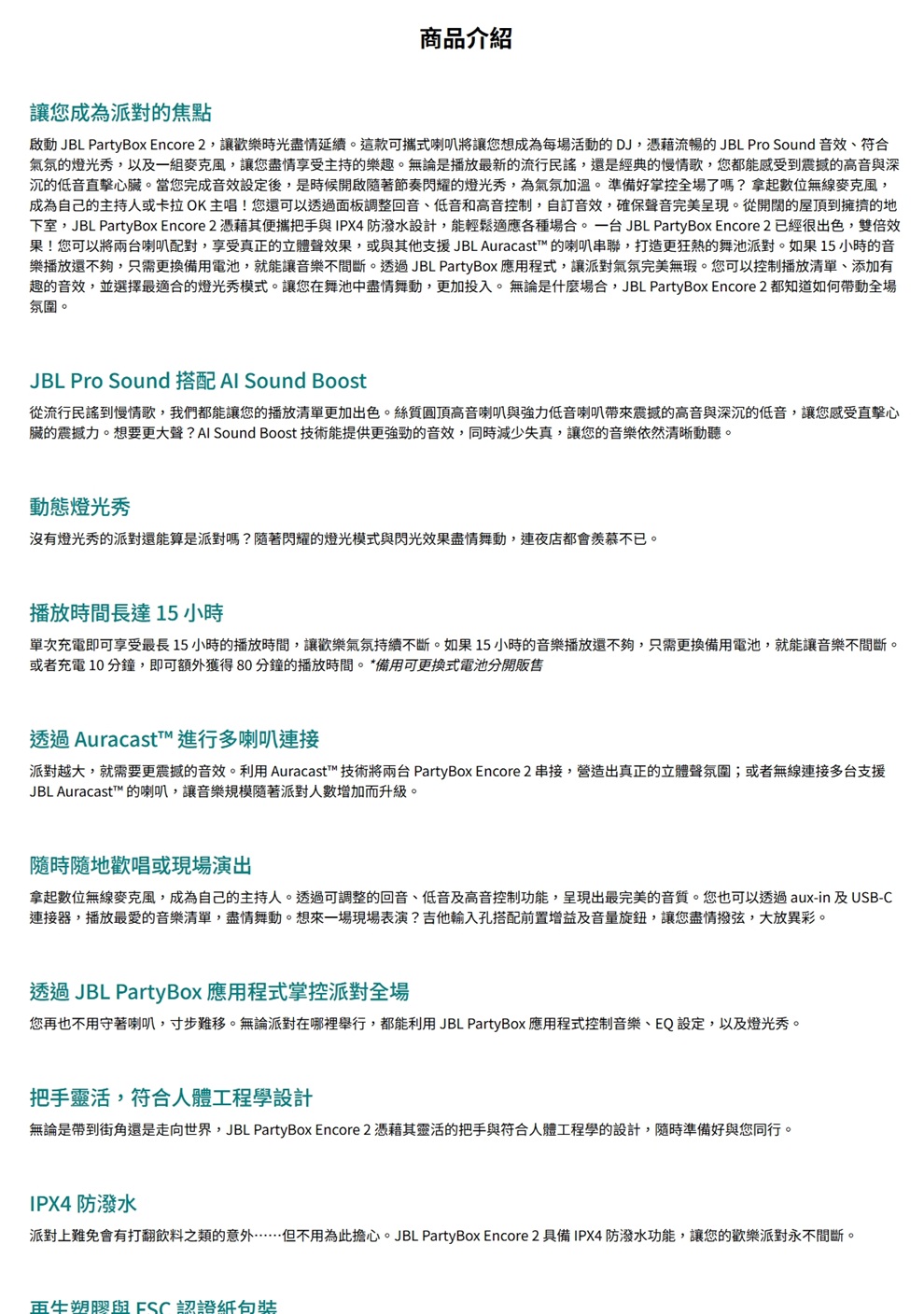 JBL 英大 Partybox Encore 2 手提式派對藍牙喇叭(內附2支無線麥克風)
