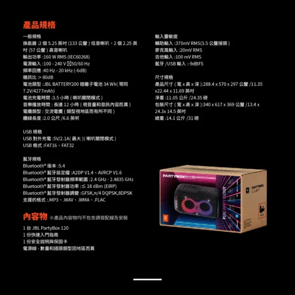 JBL Partybox club 120 便攜式派對藍牙音響(吉他麥克風輸入/藍芽/app操控/防潑水) 數量