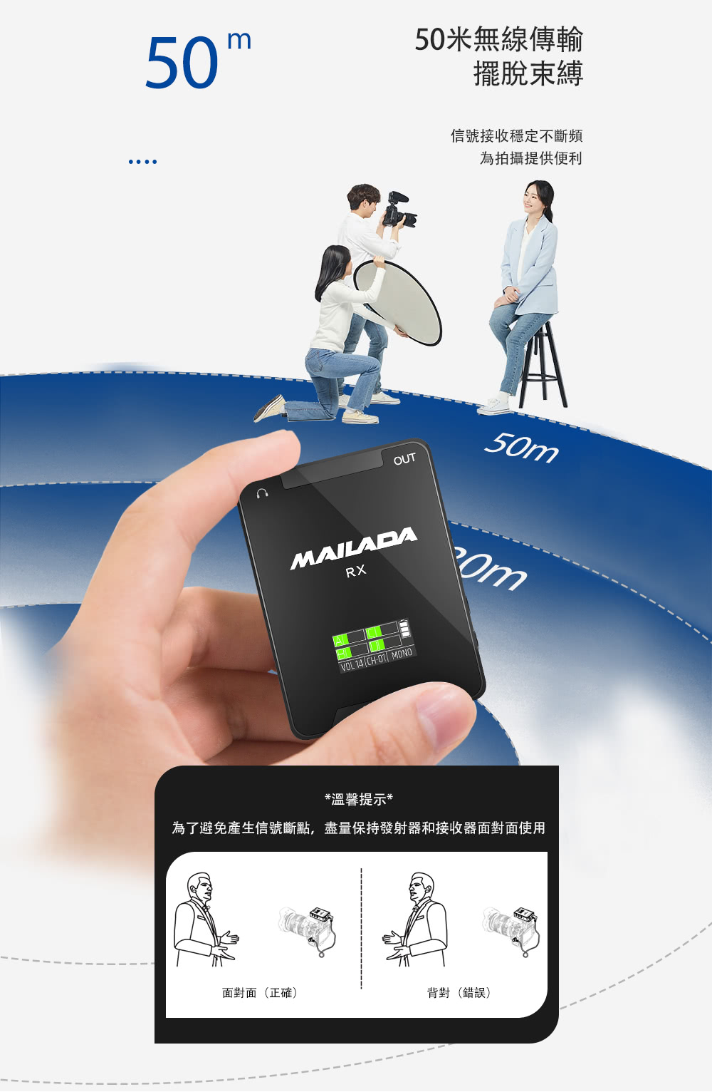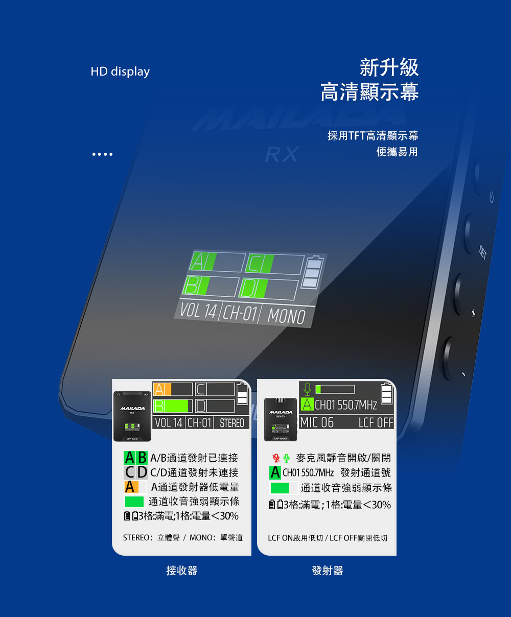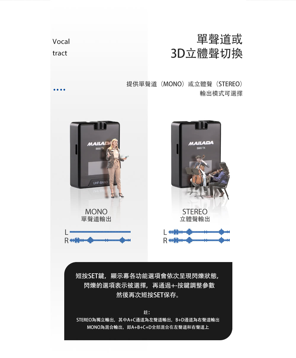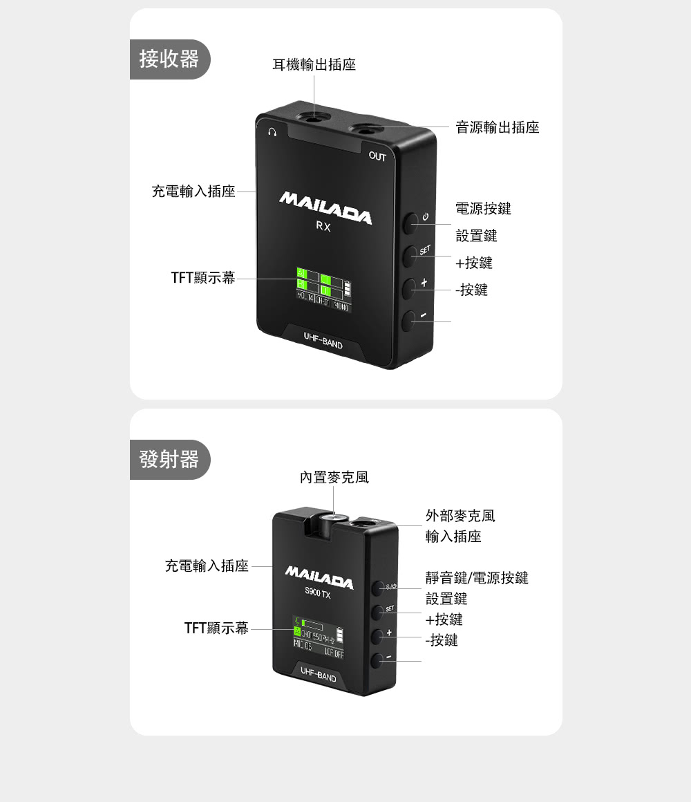 接受器與發射器皆可獨立調節音量