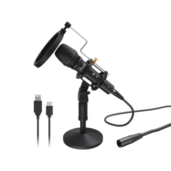 具備 USB 數位輸出與 XLR 類比輸出。USB 模式支援隨插即用,快速連接電腦或筆電;XLR 模式則可連接至混音器或專業音頻接口,滿足進階錄音需求。