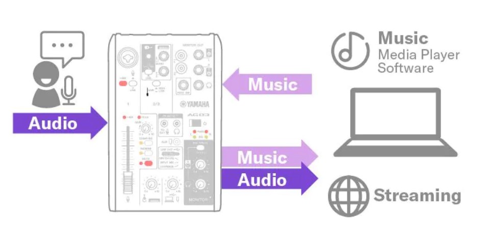 當然,它也可像先前的 AG 型號一樣,用 Loopback 回放模式透過以 USB 連接的裝置新增音訊。